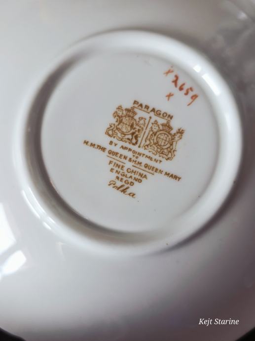 Paragon (Vintage): Originalni kolekcionarski primjerci iz sredine 20. stoljeća često dolaze kao "trio" set koji uključuje šalicu, tanjurić i manji tanjur za desert.