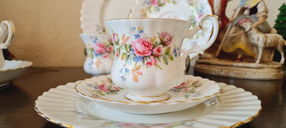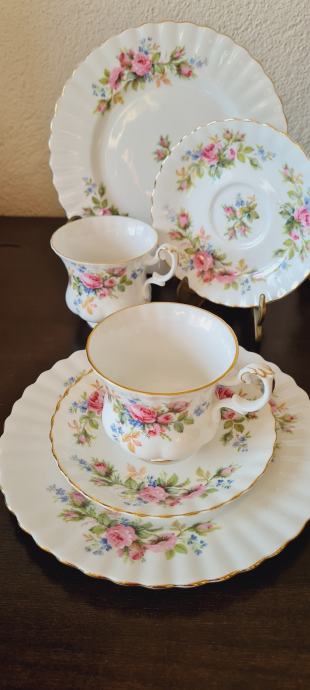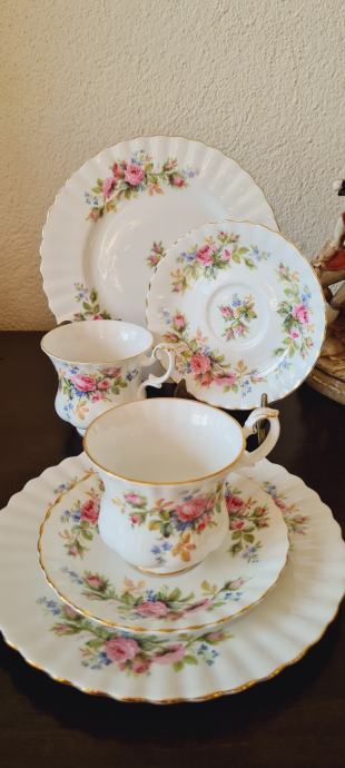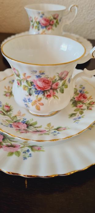 Tris, Royal Albert "Moss rose". U presavršenom stanju. Engleski koštani porculan. Iz 60-ih godina prošlog stoljeća