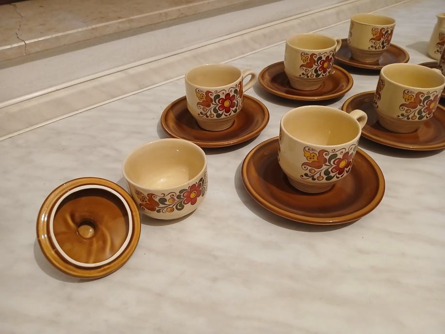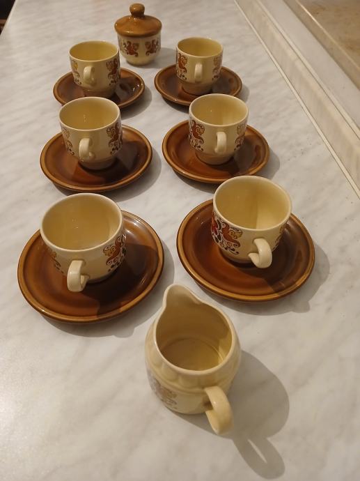 Prodaje se unikatni servis za kavu koji se sastoji od 6 šalica, 6 tanjurića, vrča i šećernice s poklopcem.