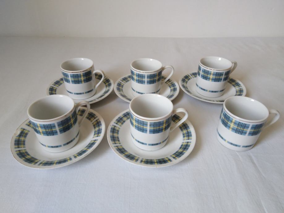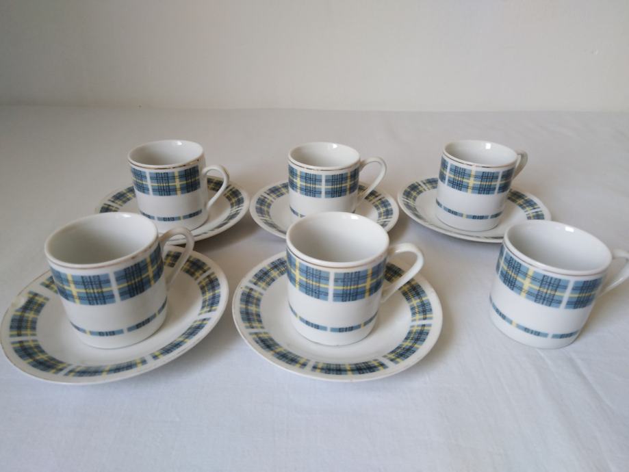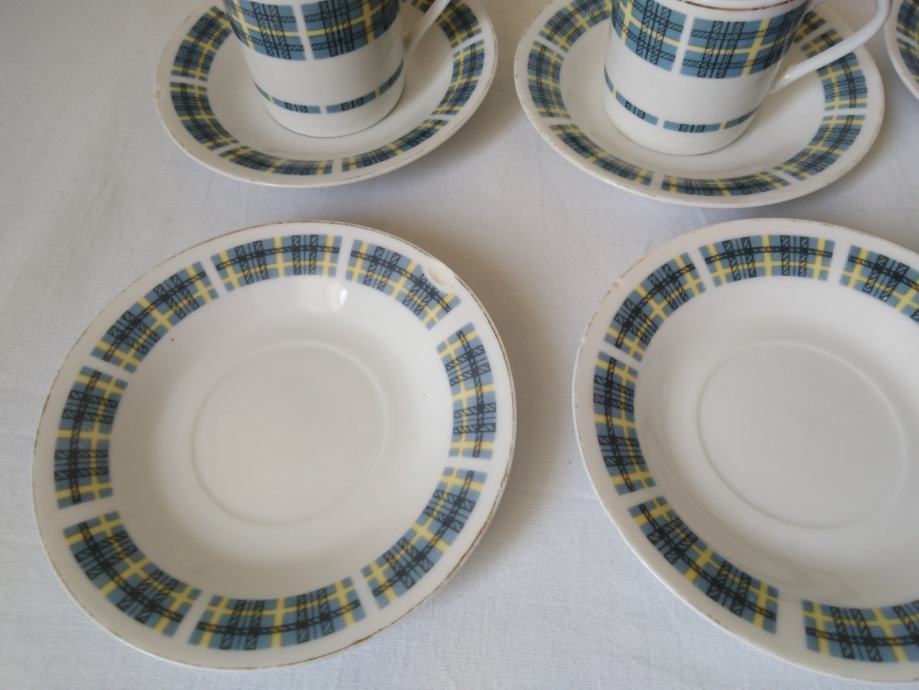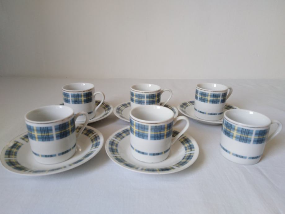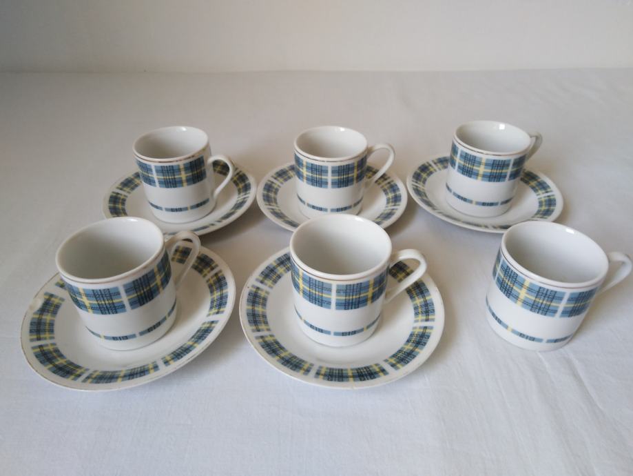 Vintage porculanske karirane šalice za kavu Set retro stare šalice