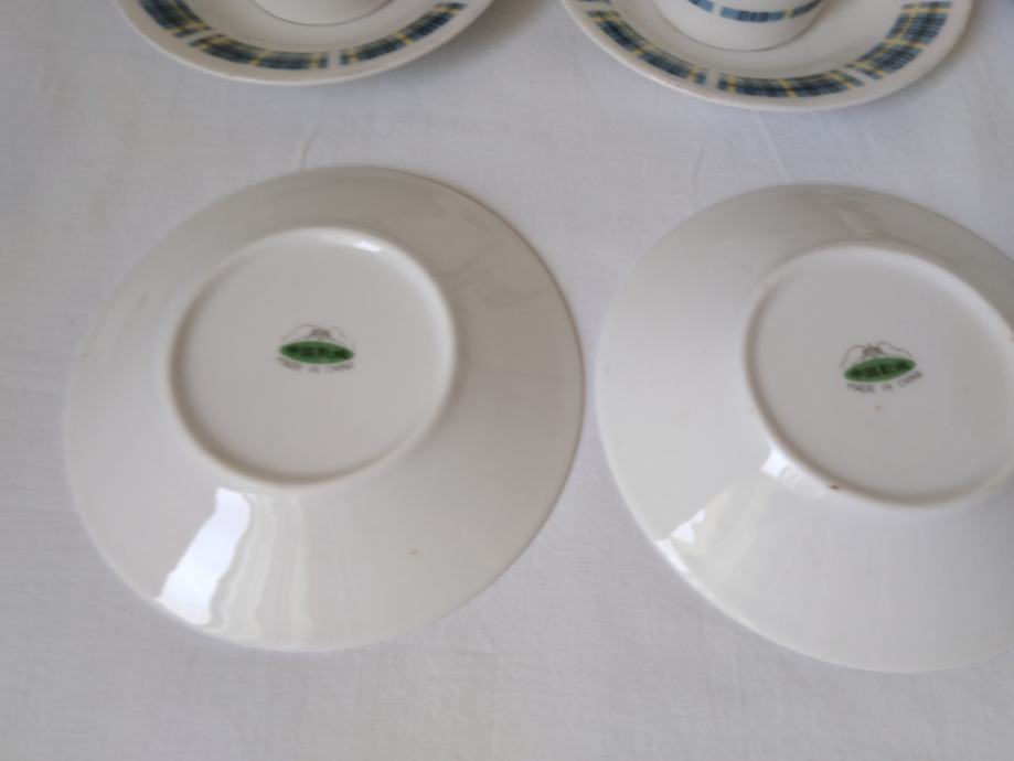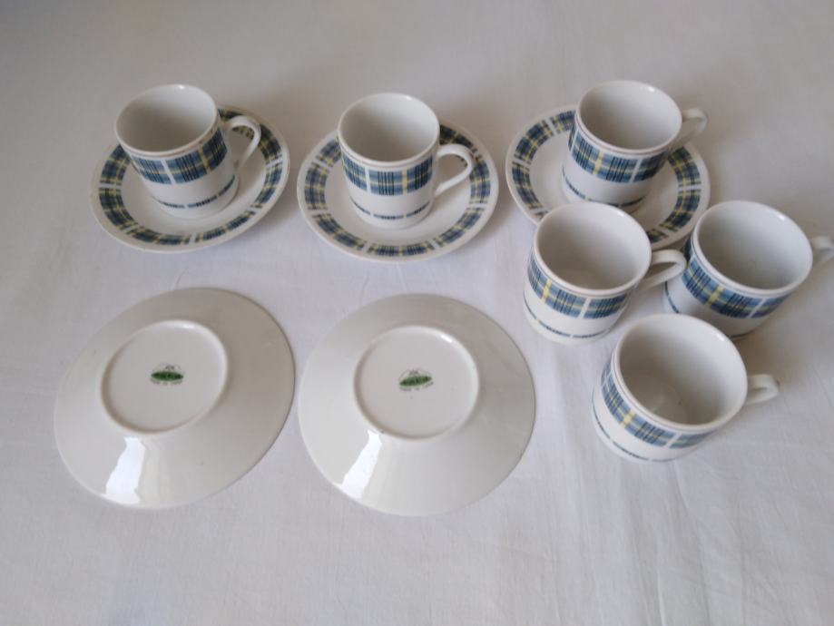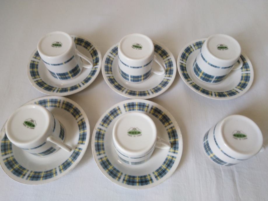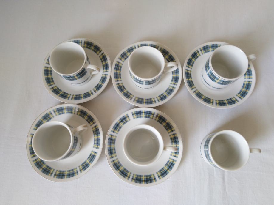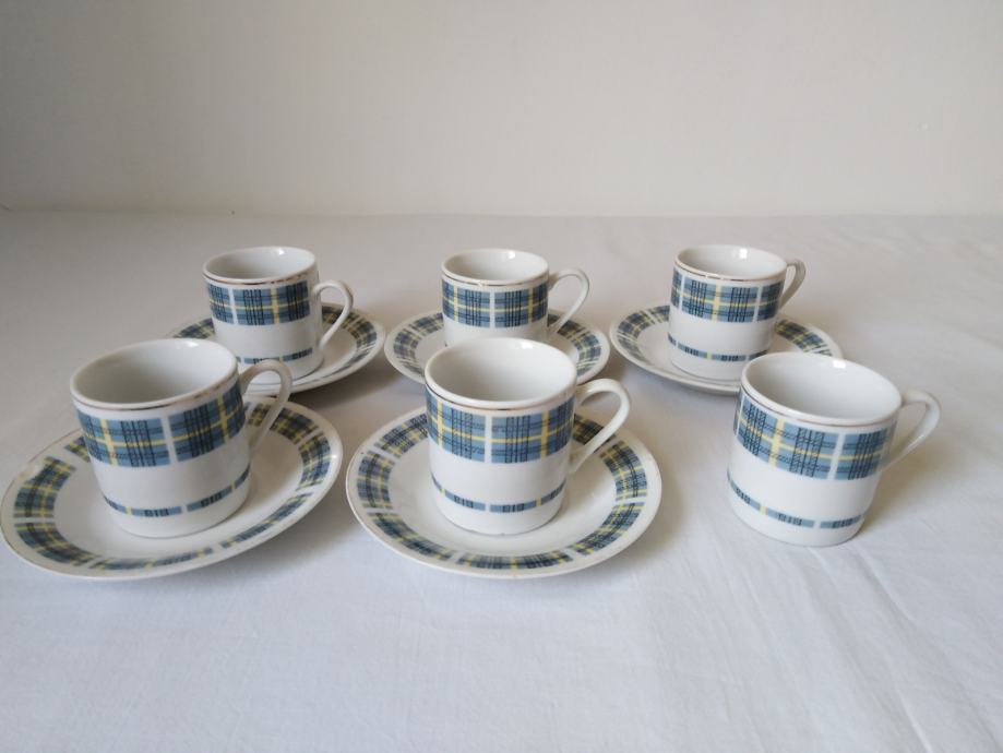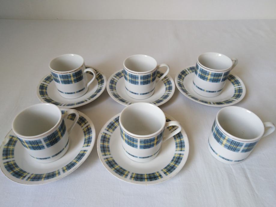 Vintage porculanske karirane šalice za kavu Set retro stare šalice