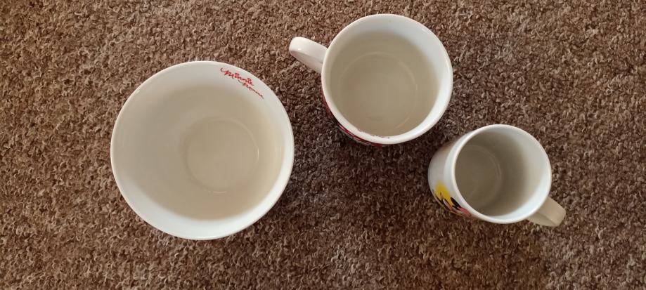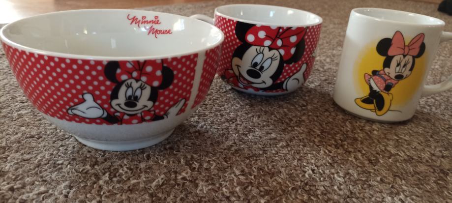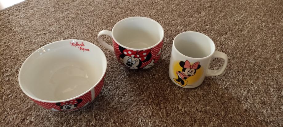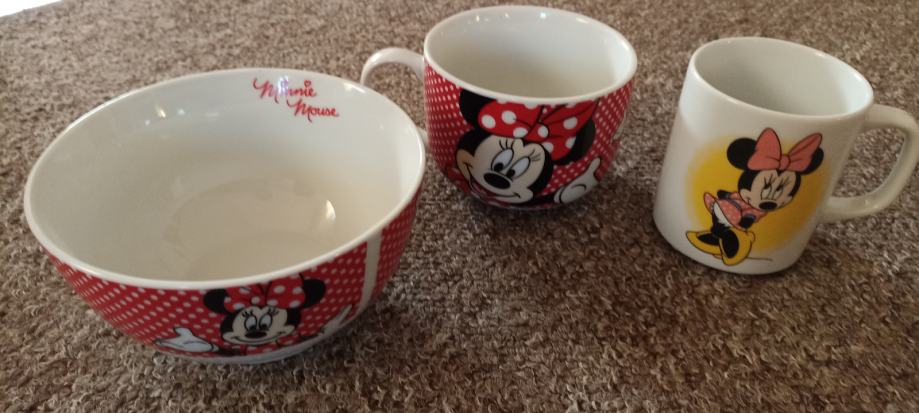 Zdjelica za pahuljice i dvije šalice sa slikom Minnie Mouse očuvano. Može slanje Tiskom ili boxom