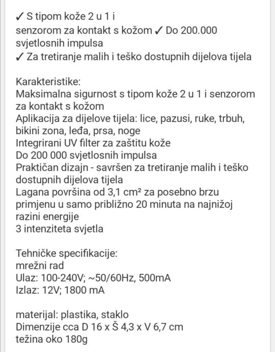 Prodajem novi i ispravan aparat za dugotrajno uklanjanje dlaka.