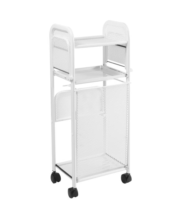 - Sastoji se od središnjeg kliznog vrha, fiksne police na vrhu i tri bočne police koje se mogu zatvoriti; ima i preklopni spremnik za vreću za smeće.