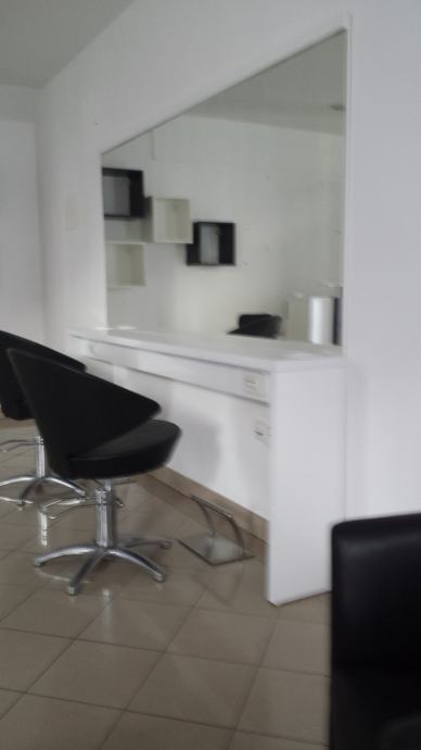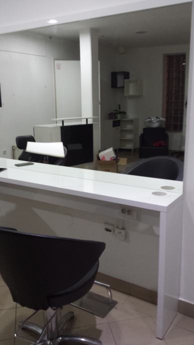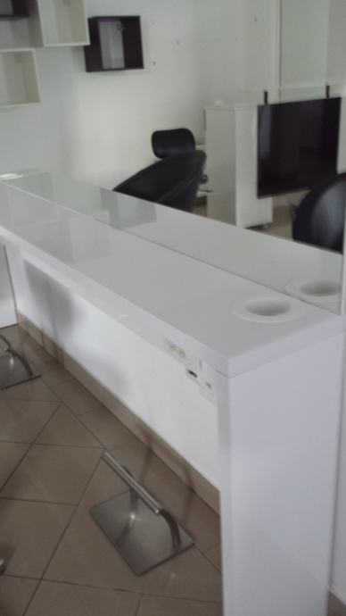 prodajem veliko ogledalo dva radna mjesta za frizerski salon dim ogledala..240 x115 cm i radi pult dim.240x30x85cm na pultu se nalazi dva otvora za fen i četiri utičnice za aparate pult je od visokog sjaja otpornog na oštećenja rađen po mjeri poznata firma namještaja u VK cijena po dogovoru Znači na prodaju je samo drveni dio a ne sve što se vidi na slici