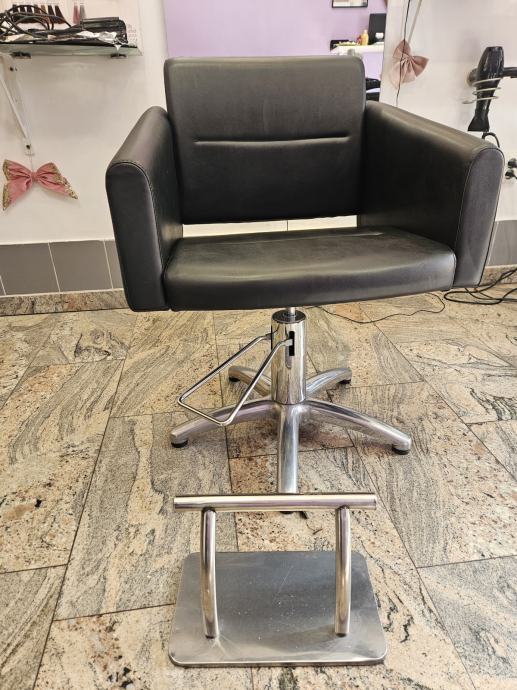 Stolica crna skay koža profesionalna podiže se i spušta sa strane na nogaru okreće se .Stara je 3.g i očuvana. Osobni dolazak po nju ili okolica Istre za dogovor 0957547606