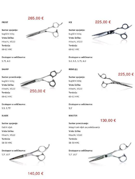 Kombinacijom tradicionalnih metoda vrućeg kovanog čelika i najnovijih tehnologija u procesu proizvodnje i kaljenja postignut je veliki koeficijent tvrdoće .japanski čelik koji se koristi za izradu škara ,daje oštrije rubove ,zahtjeva rijede oštrenje I lakši je u ravnoteži.....
