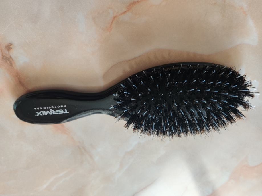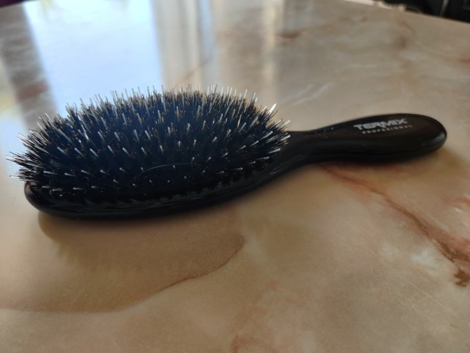 Četka ima iglice izrađene od 100% veprove dlake u kombinaciji s najlonskim iglicama te je idealna za dugu kosu i