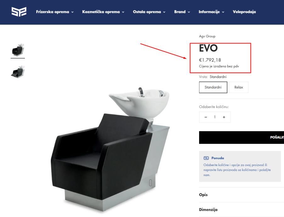 Frizerski glavoper sa integriranom kompletnom opremom za jednostavnu instalaciju. Ugrađena nagibna keramika sa ugrađenim tušem, mikserom i vodovodno-odvodnim crijevima. Glavoper se fiksira u pod radi stabilnosti.