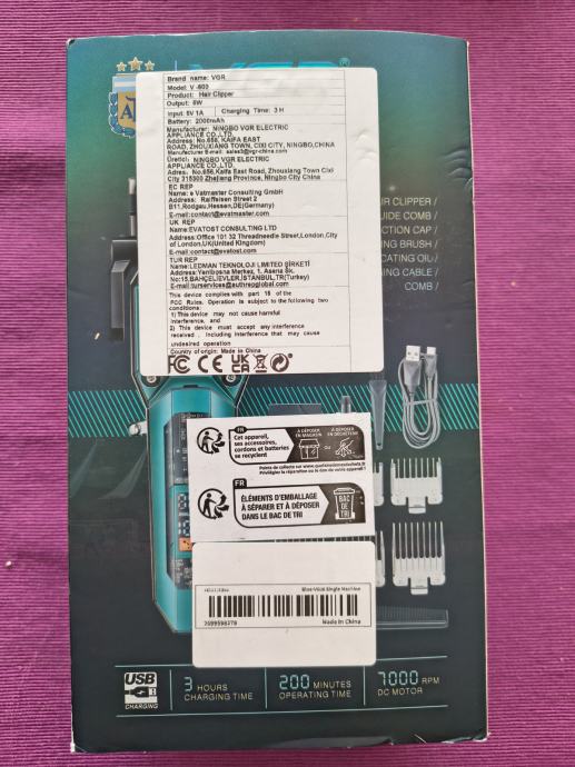 Profesionalna mašinica za šišanje VGR V600. Nova mašinica,2000 mAh baterija,5 W, 3 sata se puni -usb c,radi 200min. 7000 rpm motor