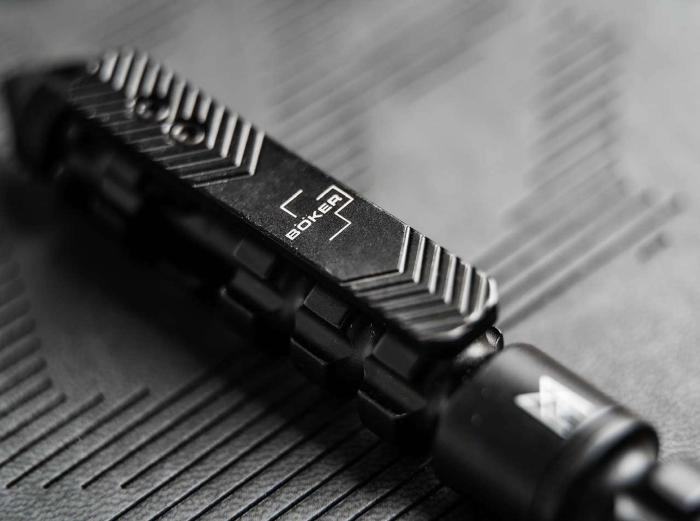 Böker Plus Fat Box tactical pen osmislio je Dirk Hofmeister iz Midgards Messer. Radi se o robusnom samoobrambenom alatu koji objedinjuje i funkciju olovke. Izrađena iz 6061 legure alumija, radi se o izuzetno čvrstoj konstrukciji i kvalitetnoj obradi. Orebrenje osigurava siguran i čvrst hvat, dok fini ergonomski detalji omogućuju i praktično korištenje pri pisanju. Vrh je opremljen razbijačem stakla iz tvrdog čelika.
