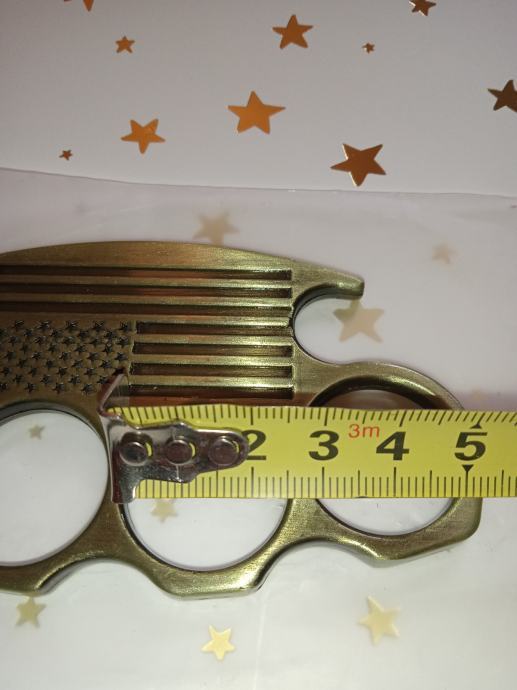 Izrađen je od čvrstog metala (obično mjedi, eng. brass), dizajniran da stane oko prstiju.