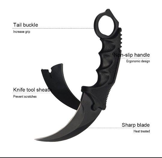3.) Vrhunski TAKTIČKI NOŽ "Karambit - Tiger Claw" od crnog čelika sa pripadajućom FUTROLOM i POVEZOM