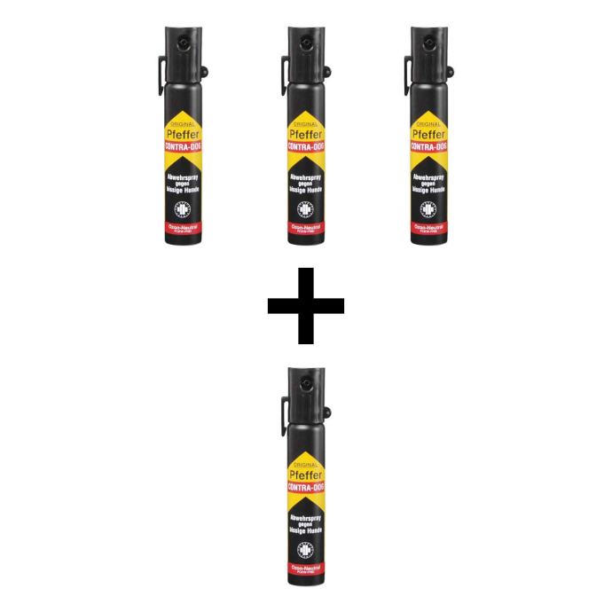 Sprejevi za samoobranu TW1000 Pepper Contra-Dog stvaraju snažan mlaz raspršivača koji proizvodi konusno širenje nadražujućeg sredstva, što olakšava pogađanje ciljeva u pokretu. Konusni način raspršivanja spreja povećava vjerojatnost pogotka i dovodi do potpune iritacije očiju i respiratornih organa napadača. Smanjena vjerojatnost promašaja napadača zbog nepreciznog ciljanja.