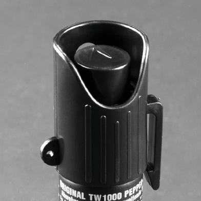 Zaštitna kapica ima uvučeni okidač koji sprječava nenamjerno pražnjenje, a opremljena je i vrlo korisnom kopčom. Zbog posebnog oblika kapice, sprej se automatski drži u ispravnom položaju i raspršuje se u smjeru napadača kada se aktivira.