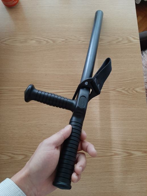 -Ravna ručka ove tonfe opremljena je utorima za bolje prianjanje, a na njezinom kraju nalazi se glava koja sprječava izvlačenje iz ruke.