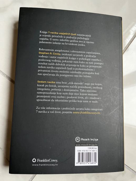 Knjiga 7 navika uspješnih ljudi najutjecajniji je svjetski priručnik iz područja psihologije uspjeha. U samo nekoliko godina ovo je njezino 11. izdanje na hrvatskom jeziku.