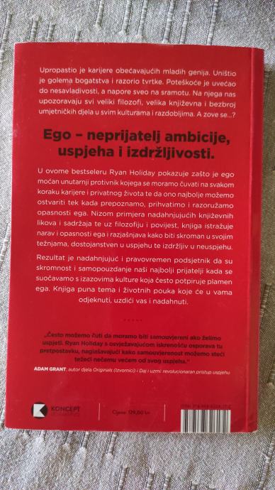 U svojem bestseleru "Ego je neprijatelj" Ryan Holidy pokazuje nam kako je i zašto ego tako moćan unutarnji protivnik kojega se moramo čuvati na svakom koraku karijere i života te da najbolji rad možemo ostvariti tek kada prepoznamo, prihvatimo i razoružamo opasnosti ega. Nizom primjera nadahnjujućih književnih likova i sadržaja te uz filozofiju i povijest, knjiga istražuje narav i opasnosti ega kako bi nam razjasnila kako možemo biti skromni u svojim težnjama, dostojanstveni u uspjehu te izdržljivi u neuspjehu.