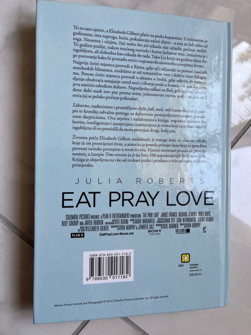 Tri su sata ujutro, a Elizabeth Gilbert plače na podu kupaonice. U tridesetim je godinama, ima supruga, kuću, pokušavaju začeti dijete – a ona ne želi ništa od toga. Nesretna i očajna, čini nešto što još nikada nije učinila: počinje moliti. Tri godine poslije, nakon mučnog razvoda i burne ljubavne veze, izmučena je i izgubljena, ali slobodna kao nikada do tada. Tako Liz kreće na godinu dana dugo putovanje kako bi pronašla sreću i uspostavila ravnotežu u svojemu životu.