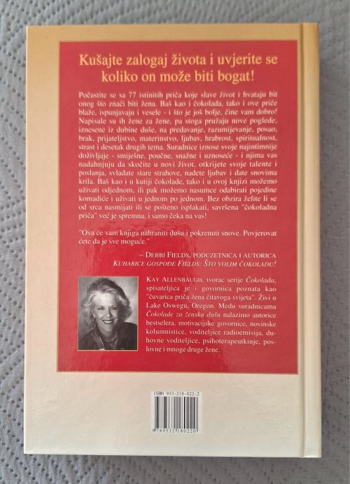 Počastite se sa 77 istinitih priča koje slave život i hvataju bit onog što znači biti žena. Baš kao i čokolada, tako i ove priče blaže, ispunjavaju i vesele - i što je još bolje, čine vam dobro! Napisale su ih žene za žene. pa stoga pružaju nove poglede, iznesene iz dubine duše. na predavanje, razumijevanje, posao, brak. prijateljstvo, materinstvo, ljubav, hrabrost, spiritualnost, strast i desetak drugih tema. Suradnice iznose svoje najintimnije doživljaje - smiješne, poučne, snažne i uznoseće - i njima vas nadahnjuju da skočite u novi život, otkrijete svoje talente i poslanja, svladate stare strahove, nađete ljubav i date snovima krila. Baš kao i u kutiji čokolade, tako i u ovoj knjizi možemo uživati odjednom, ili pak možemo nasumce odabirati pojedine komadiće i uživati u jednom po jednom. Bez obzira želite li se od srca nasmijati ili se pošteno isplakati, savršena "čokoladna priča" već je spremna, i samo čeka na vas!