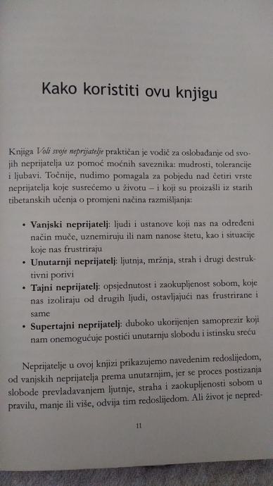 Prodajem knjigu „Voli svoje neprijatelje: kako izaći iz zatvorenog kruga ljutnje i ogorčenosti", prijevod djela: Love your enemies: how to break the anger habit and be much happier, autori Sharon Salzberg i Robert Thurman,