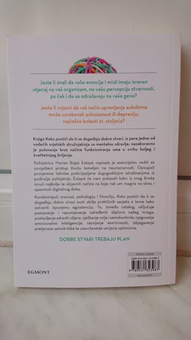 Jeste li znali da vaše emocije i misli imaju izravan utjecaj na vaš organizam, na vašu percepciju stvarnosti, pa čak i da se odražavaju na vaše gene? Jeste li svjesni da vaš način upravljanja sukobima može uzrokovati anksioznost ili depresiju, najčešće bolesti 21. stoljeća? Knjiga “Kako postići da ti se događaju dobre stvari”, iz pera jedne od vodećih svjetskih stručnjakinja za mentalno zdravlje, nezaboravno je putovanje kroz načine funkcioniranja uma u svrhu boljeg I kvalitetnijeg življenja. Psihijatrica Marian Rojas Estapé napisala je esencijalan vodič za osviješteni pristup životu temeljen na neuroznanosti. Opisujući provjerene tehnike potkrijepljene dugogodišnjim istraživanjima iz područja psihijatrije, Estapé će nam pokazati kako iz svog života izvući najbolje te objasniti načine na koje naš um reagira na stres i opasnosti digitalnog doba.