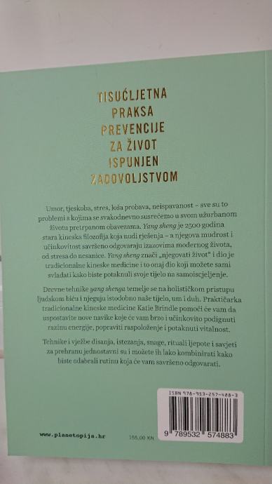 Yang sheng znači „njegovati život“ i dio je tradicionalne kineske medicine i to onaj dio koji možete sami svladati kako biste potaknuli svoje tijelo na samoiscjeljenje. Ta 2500 godina stara kineska filozofija i praksa prevencije za život ispunjen zadovoljstvom savršeno odgovara izazovima modernog života, od stresa do nesanice, od umora do njegovanja ljepote. Drevne tehnike yang shenga temelje se na holističkom pristupu ljudskom biću i njeguju istodobno naše tijelo, um i duh. Tehnike samopomoći, vježbe disanja, istezanja, snage, rituali ljepote i savjeti za prehranu u skladu s godišnjim dobima jednostavni su i možete ih lako kombinirati kako biste odabrali rutinu koja će vam savršeno odgovarati. Yang sheng je tisućljetna praksa koja će vam pomoći da uspostavite nove navike koje će vam brzo i učinkovito podignuti razinu energije, popraviti raspoloženje i potaknuti vitalnost.