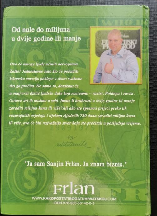 Spomene li se milijunaš, pomislit ćete kako je taj ili genij ili srećković ili lopov - ili sve troje. Iz svog iskustva i iskustva brojnih uspješnih poduzetnika tvrdim da svatko može svladati proces kojim će, počevši od nule, postati milijunaš bez da je išta od gore navedenoga. Vodeći se motom "većina ljudi je prezauzeta zarađivanjem za život da bi zaradila ozbiljan novac", stvorio sam knjigu koja će vam u tome pomoći. Ona objedinjuje životnu mudrost nekih od najbogatijih ljudi današnjice te bez dlake na jeziku otkriva sve gotovo nepoznate tajne stjecanja bogatstva. Da biste krenuli nije vam potreban početni kapital, poseban talent, obrazovanje, sreća ili veze. Sve što vam treba je dovoljno povjerenja da prihvatite ono što piše između njenih korica. Dovoljno optimizma da moje principe pokrenete u praksi. I jedan vikend koji ćete posvetiti proučavanju moje knjige...