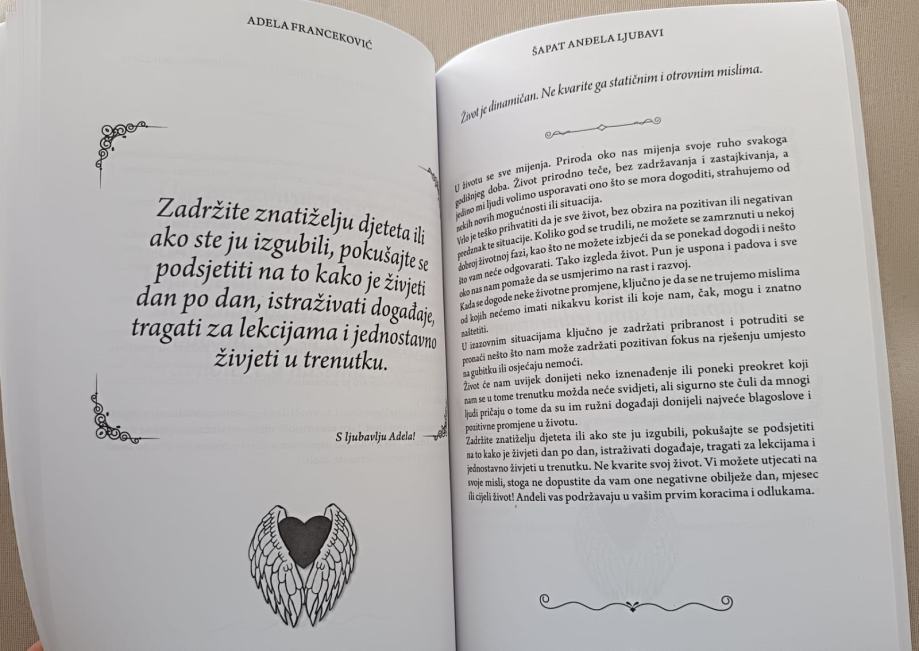 Prodajem knjigu autorice Adele Franceković "Šapat anđela ljubavi". Ima posvetu autorice.