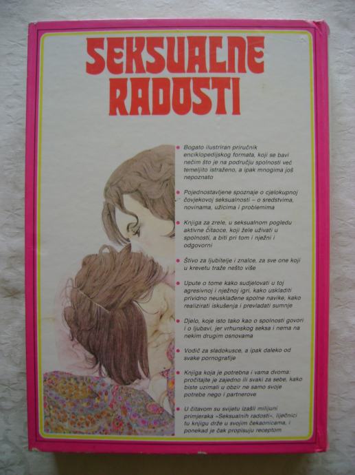 Seksualne radosti; Kako vješto voditi ljubav - uredio Jože Fistrović, preveo Marijan Boršić, izdavač Pomurska založba, Murska Sobota 1984. godine, 19 x 27 cm, tvrdi uvez, 264 stranice, bogato ilustrirano crtežima.