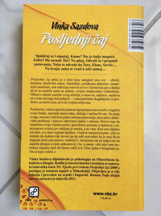 "Posljednji čaj" priča je o sasvim običnoj ženi za koju bi se moglo reći da posjeduje mnogo – obitelj, karijeru, društveni status. Ima sve, a ipak nema ništa jer više ne zna tko je. Odvažno kreće na put tisuće kilometara dug kako bi se ponovno pronašla i vratila nadu u svoj život.
