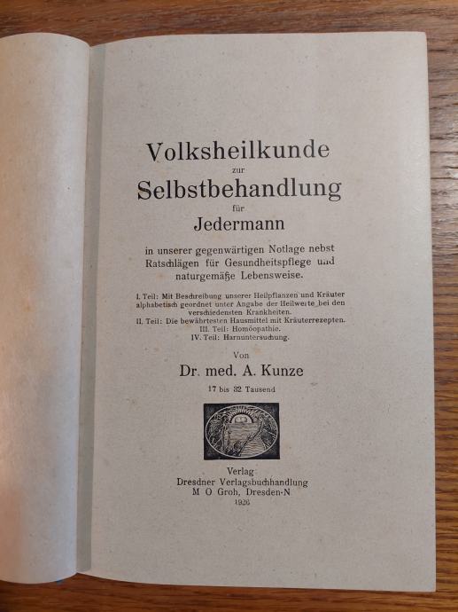 Narodna medicina za samoliječenje za sve - Dr. medicinski A. Kunze - 1926. god