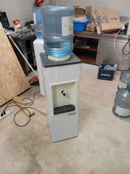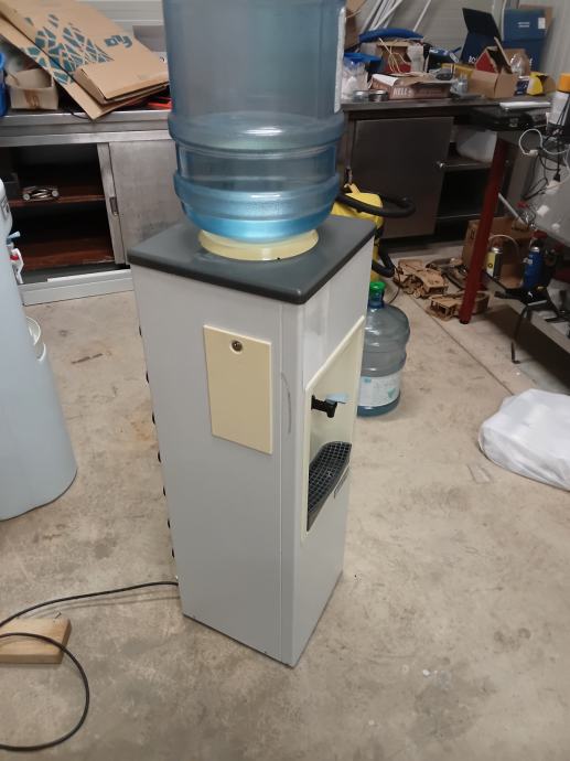 Rabljeni aparat za istakanje vode iz galona ,ima samo hladnu (odlično za tulume i fešte može se staviti vino ili šta drugo jer ima samo jednu posudu) koja je lako dostupna te se vrlo lako očisti.Kako nema posudu za toplu vodu nema ni problem sa kamencem.