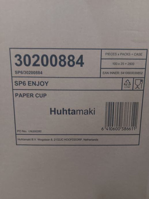 Prodajem čaše za samoposlužne automate, "Huhtamaki", model SP6 Enjoy, papirnate, HR tekst...