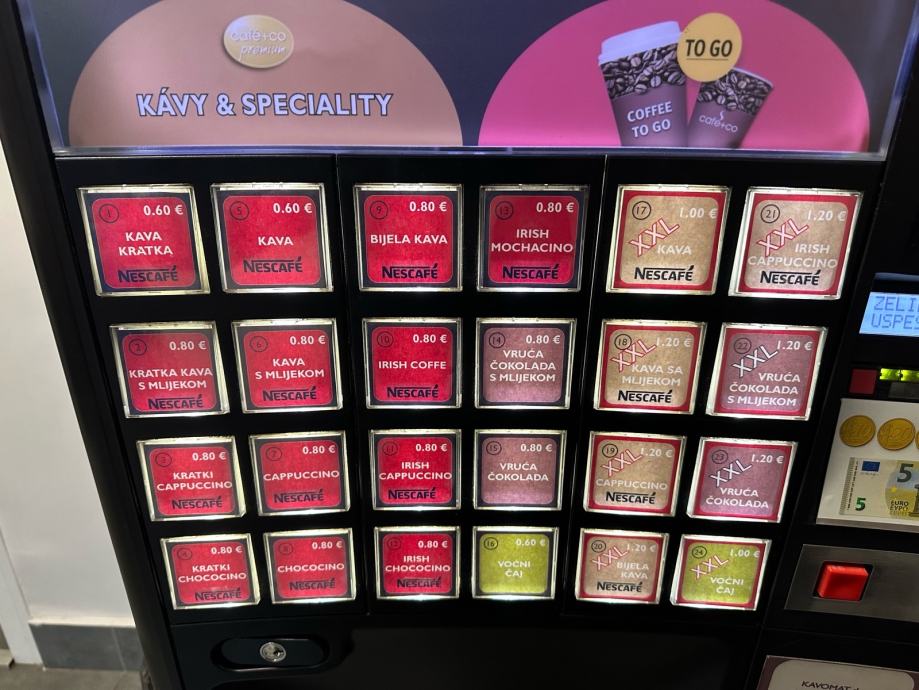 2x samoposlužna caffe aparata za tople napitke.