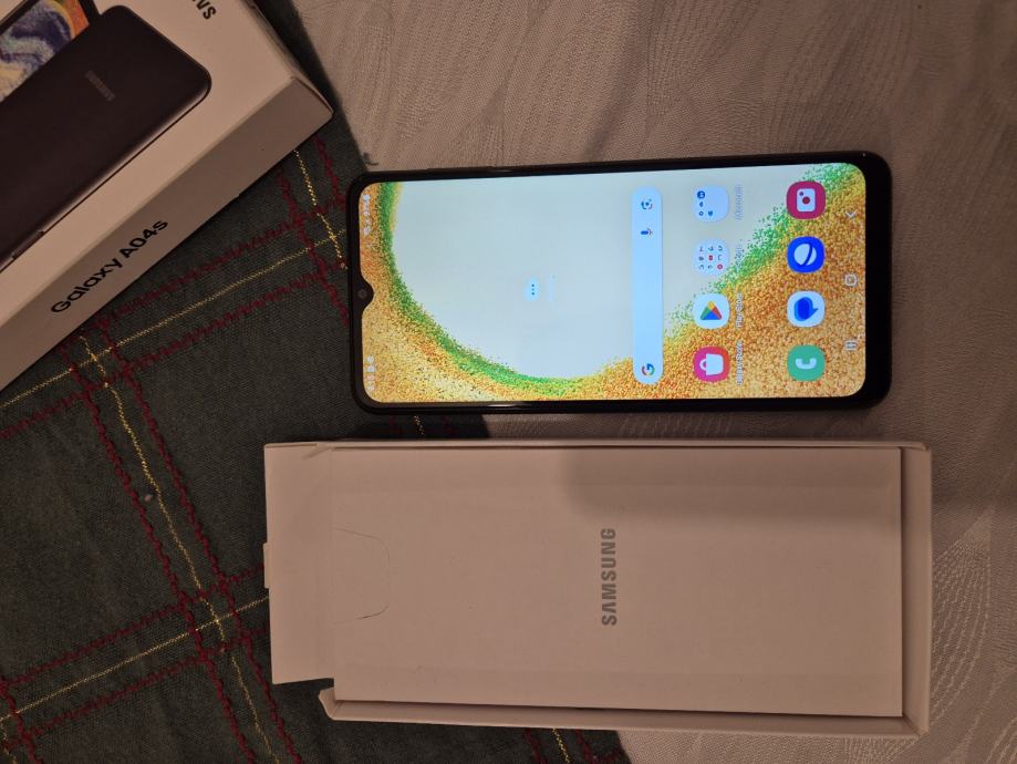 Samsung Galaxy A04s. Otvoren i ne korišten. Upaljen da se vidi početni zaslon. Nije nikad korišten.