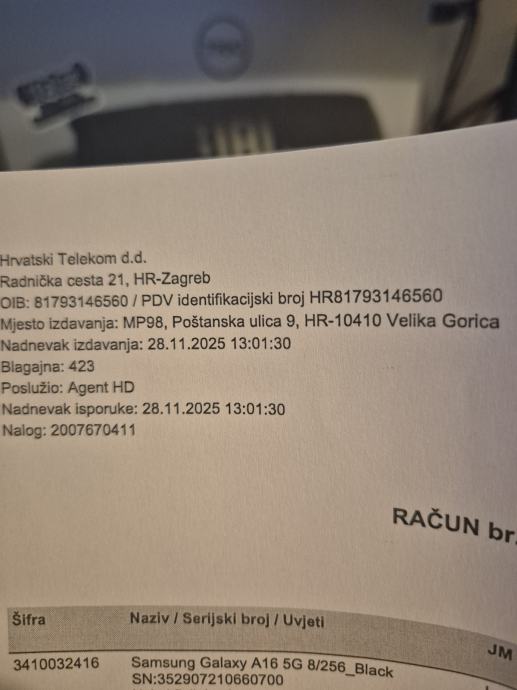 Račun i garancija teče od 28.11.2025.
