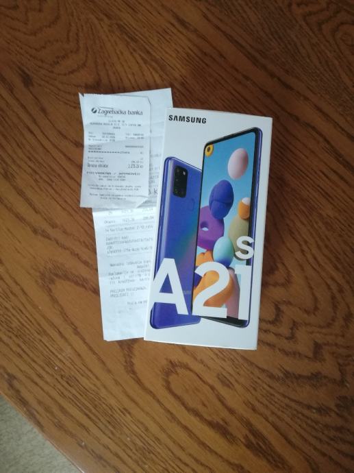 Prodajem Samsung Galaxy A21s, dual sim, plave boje. Mobitel je u futroli i sa kaljenim staklom na ekranu, nema tragova korištenja. Tvornička garancija do 20.11.2022. Uz uređaj ide i sva oprema (punjač, slušalice, kutija, račun), plus nova preklopna maskica i kaljeno staklo.