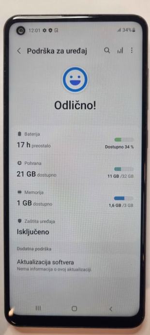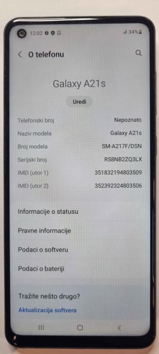 Prodajem Samsung A21s, 3 GB RAM, 32 GB pohrana. Korišten, ali u dobrom stanju.