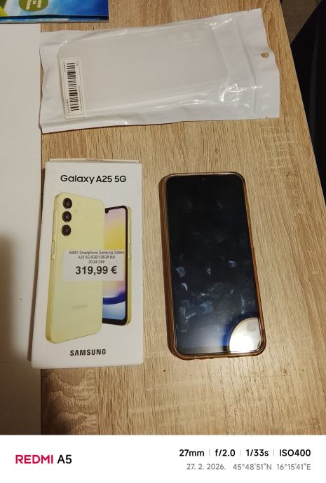 Samsung Galaxy A 25 (5G) i Samsung Galaxy Watch 5 oba uređaja u odličnom stanju. Mobitel ima garanciju do 09.10.2026. a satu je garancija izašla prodaje se u kompletu. Mobitel od početka u silikonskoj masci i kaljeni staklo na ekranu plus još jedna nova silikonska maska. Sat ima originalni remen plus još tri remena idu uz njega. Sve vidljivo na slikama. Prodaja samo u kompletu a cijena je 150 eura.