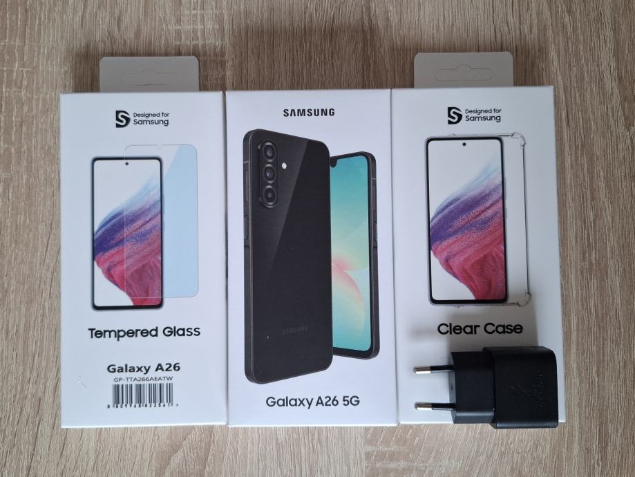 Samsung Galaxy A26 6/128GB, a uz njega dajem prozirnu maskicu, kaljeno staklo i adapter za punjenje. Sve je novo i netaknuto, što je vidljivo i na fotografijama. Preuzimanje moguće i na području Zagreba u blizini Gl. kolodvora.