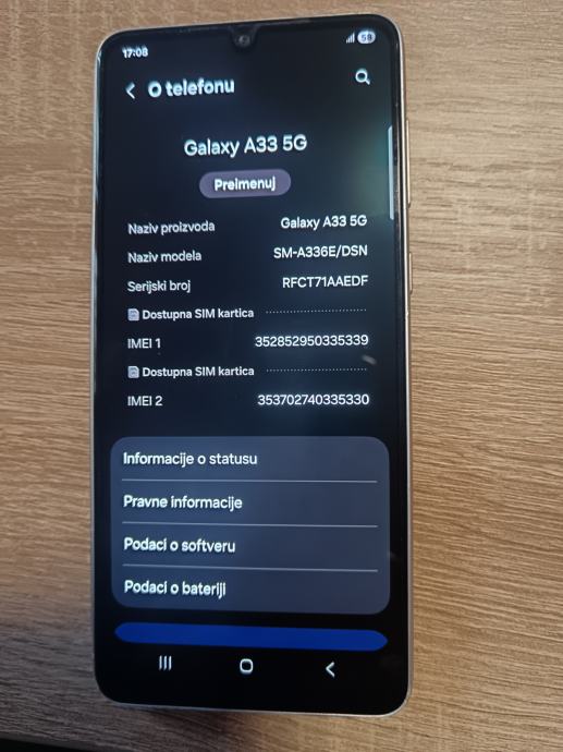Prodajem mobitel Samsung galaxy A33, 5G, 8/128 GB, bijele boje, bez punjača i kutije, mobitel u ispravnom stanju, jedino što ima mali problem sa ekranom u pozadini, ali ne utječe na funkcionalnost mobitela, sve besprijekorno radi.