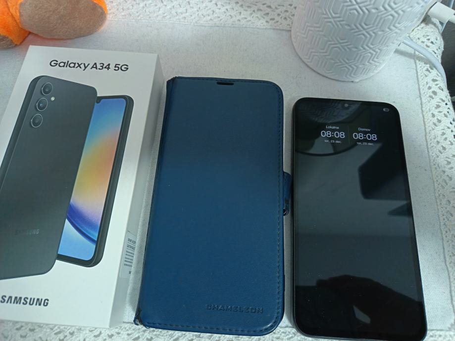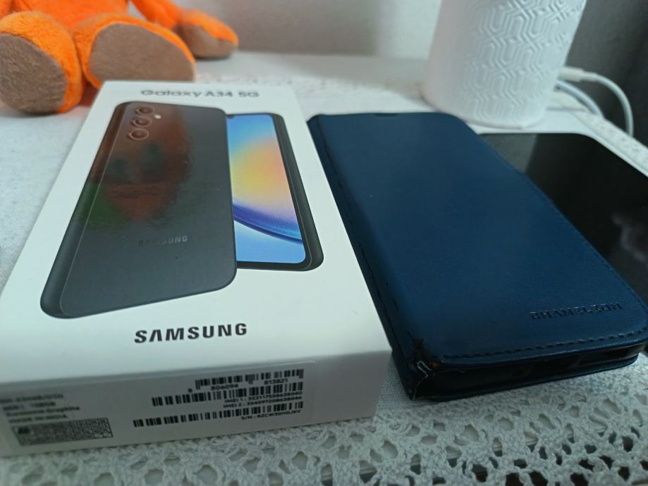 Prodajem rabljeni Samsung Galaxy A34 5G u odličnom stanju s originalnom kutijom. Mobitel dolazi s plavom futrolom i potpuno je funkcionalan. Zaslon je bez oštećenja, a baterija drži cijeli dan.