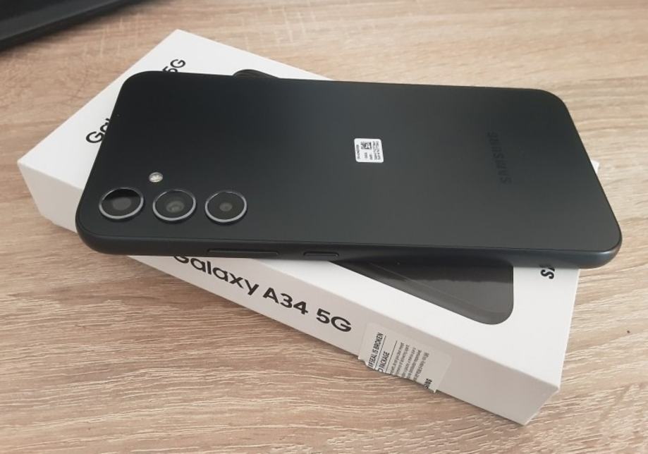 Samsung Galaxy A34 5G; Octa-core, 6GB/128GB, 48Mp, Graphite black; nov, ne korišten. Osobno preuzimanje, javiti se porukom na njuškalu.