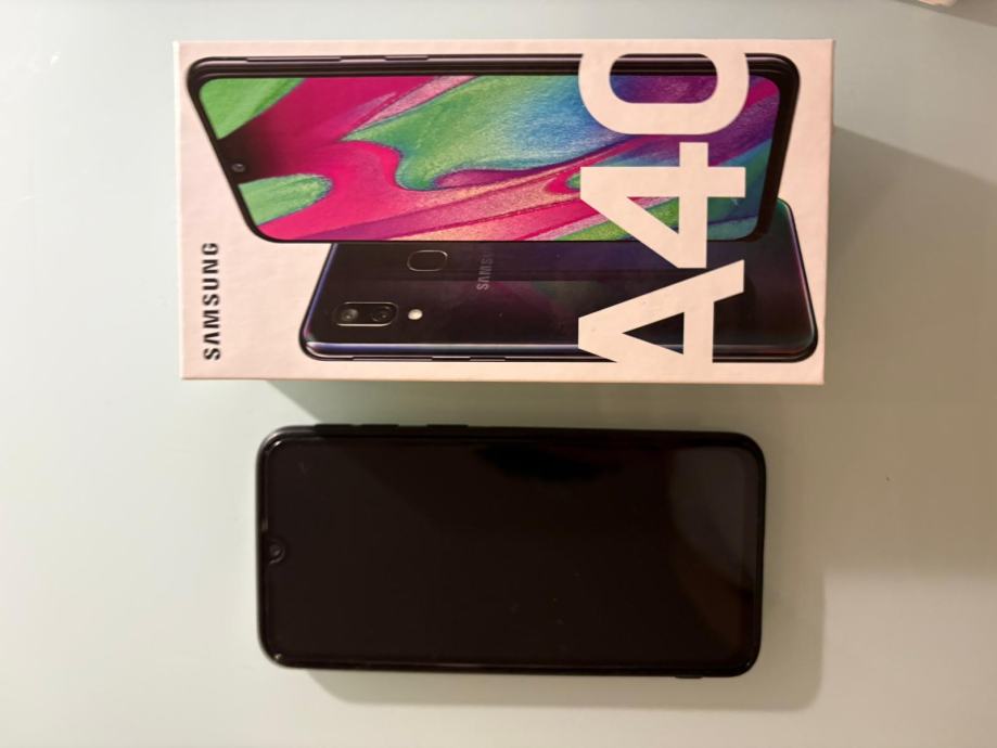 Samsung A40, kao nov, original kutija, punjač, kabel i slušalice. Dodatno zaštitno kaljeno staklo i maskica s teksturom kao kordura. Baterija drži oko 1 dan.