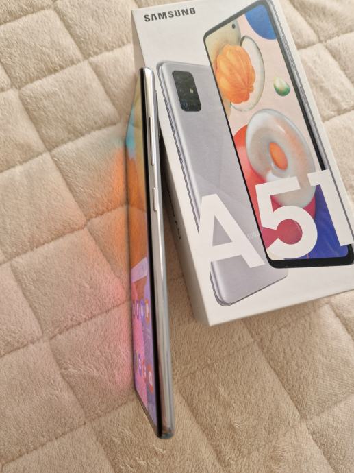Prodajem Samsung Galaxy A51 mobitel s 128GB memorije u boji Haze Crush Silver. Mobitel je jako malo korišten, isključivo s maskicom i u odličnom je stanju, bez oštećenja.