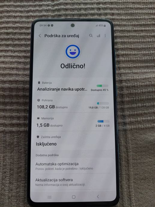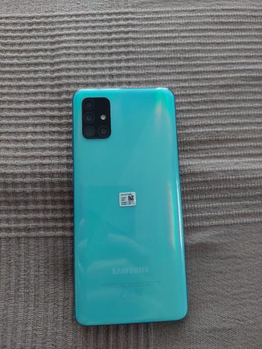Prodajem Samsung Galaxy A51 u tirkiznoj boji. Telefon ima 128 GB ukupne memorije i 4 GB RAM-a. Uređaj je u funkcionalnom stanju, radi kako treba, jako dobro očuvan.