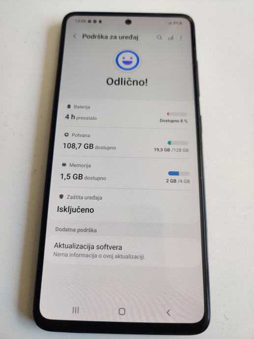 Ispravan i dobro očuvan mobitel sa punjačem, baterija odlična, 4 GB RAM,128 GB ROM, dual sim