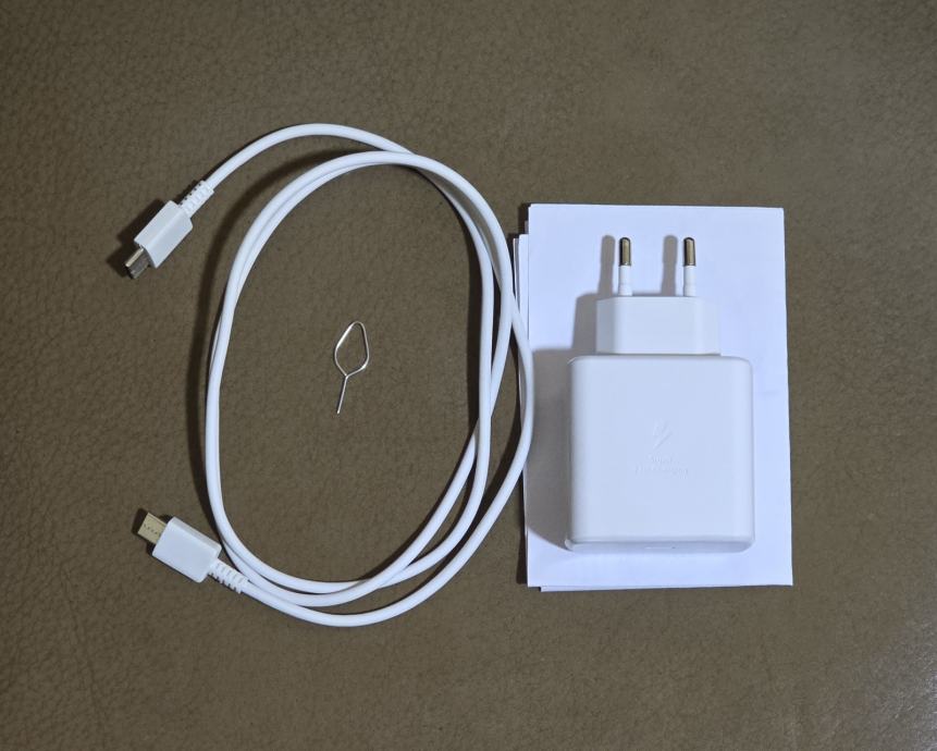 Kutija, mobitel, punjač, iglica za mobitel i garancija koja je odavno istekla