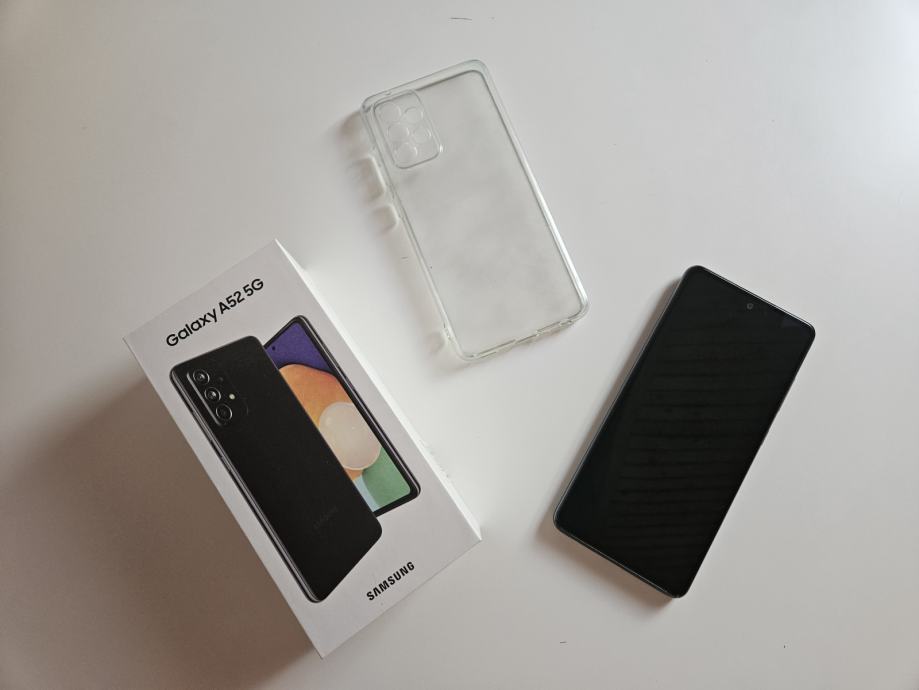 Samsung Galaxy A52 5G, bez ogrebotina, kao nov, originalna kutija i kabel za punjenje, zaštitna silikonska prozirna maskica.